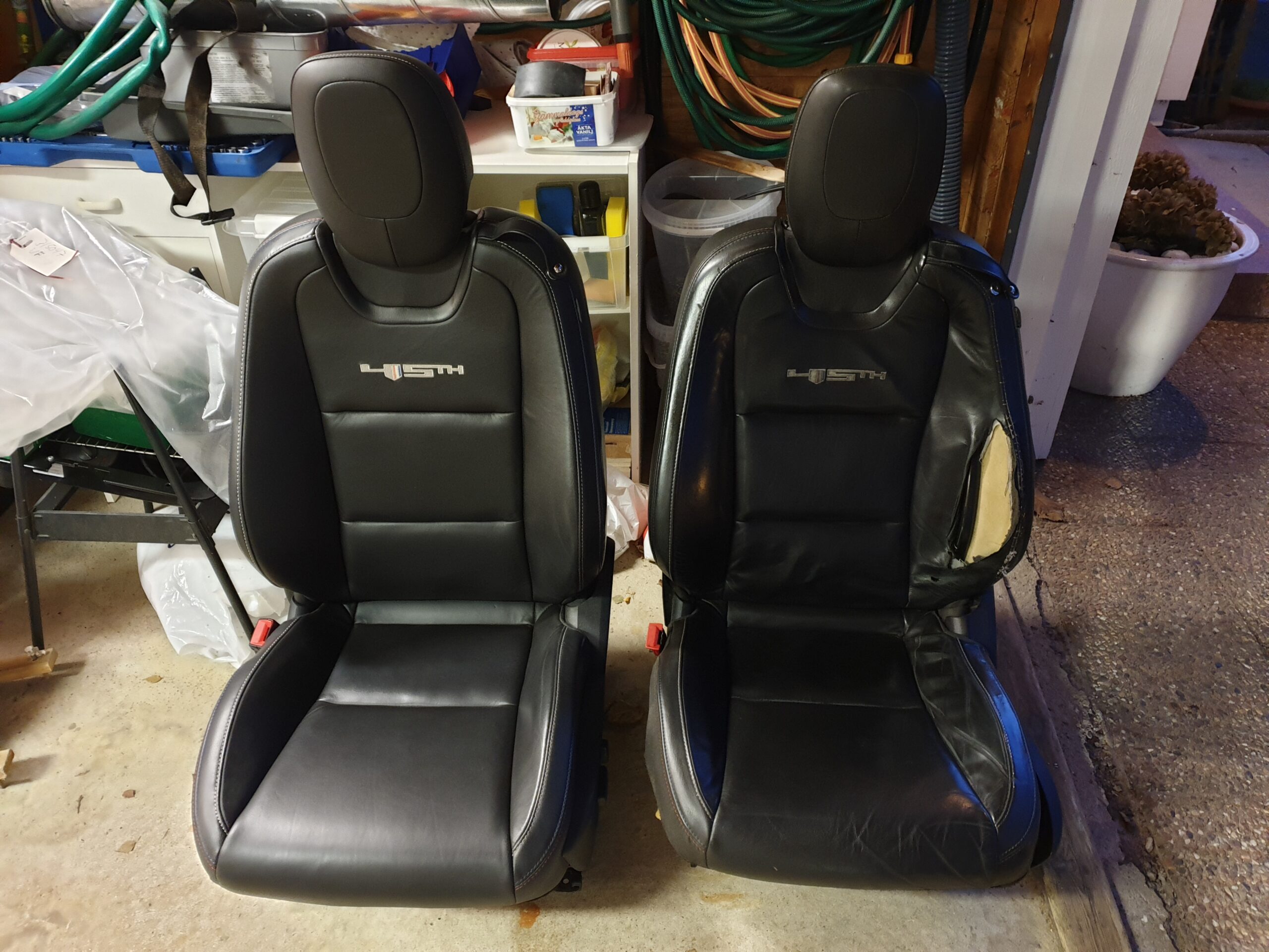 Även originalratten hade blivit sliten på flera ställen. Speciellt i ovankant. Lyckligtvis finns det bra reperationskit även för detta. Enklast hade varit att byta mot en bättre begagnad ratt men eftersom jubileumsmodellen har unik sömnad i rött, blått och vitt, även runt ratten är de svåra att få tag i. Tänk att om du tänker ta av ratten så glöm inte att först koppla ur batteriet för att inte råka utlösa air-bagen.
