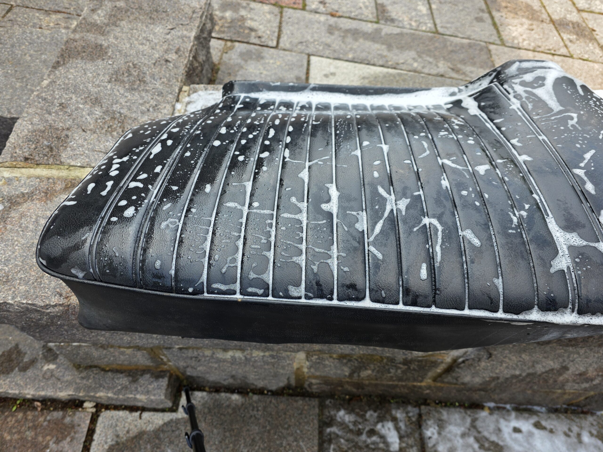 Efter cirka tio år ute hade det mesta i inredningen blivit angripet, däremot var bland annat stolar och golvmatta i mestadels helt skick. Efter att tagit ut all inredning var det därför dags för att rengöra inredningen. Med diskmedel och mycket skrubbande kom så sakta originalinredningen fram. Efter en del efterbehandling med olika inredningsmedel blev det riktigt bra. Till mattan, som ska vara svart men solblekts, använde jag en speciell mattfärg.