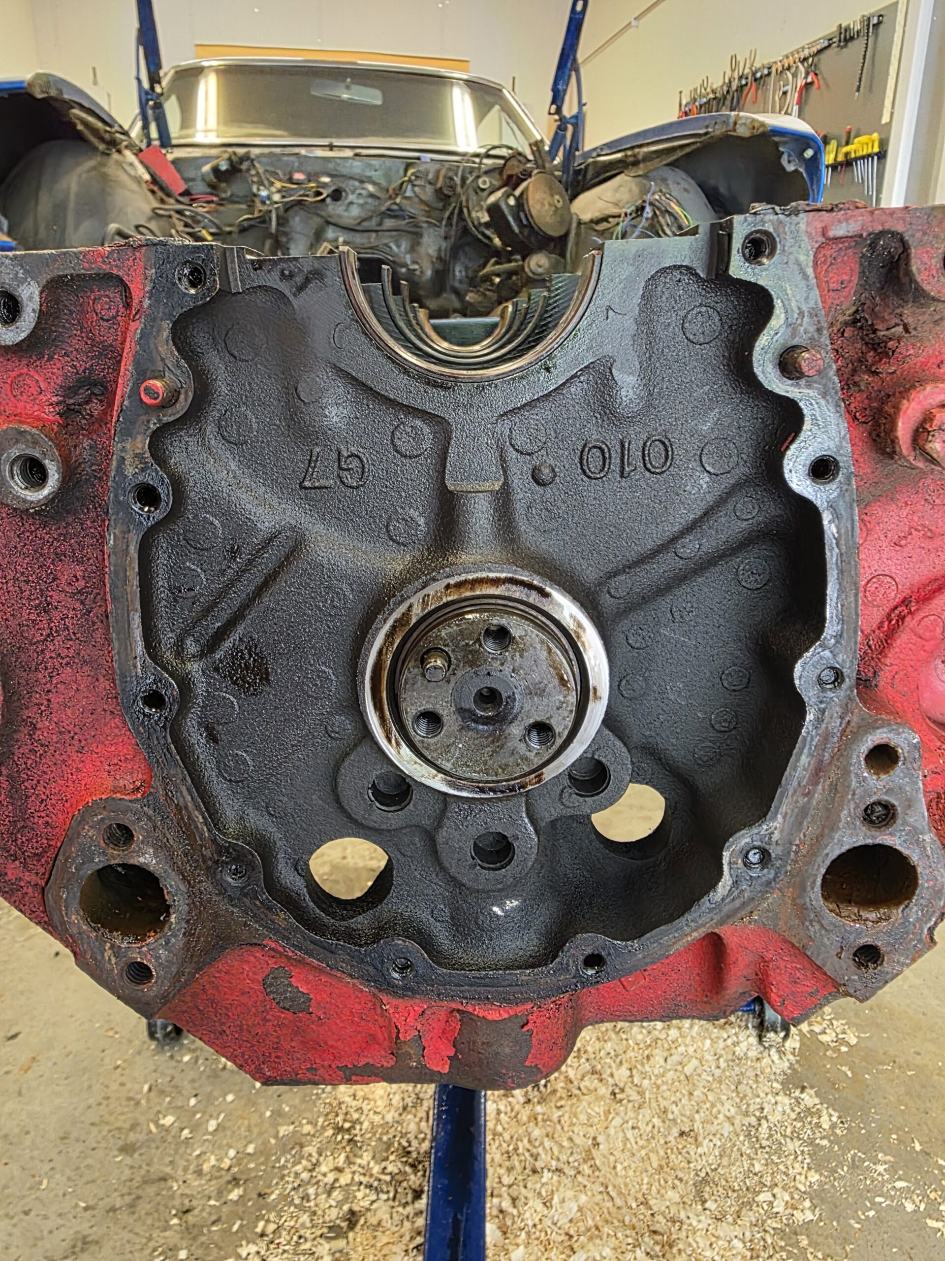 Om du hittar siffran 010 på blockets framkant betyder det att du har ett extra starkt small block – ett gjutjärn med högre nickelhalt, uppskattat av motorbyggare världen över. Det är en liten detalj som ofta förbises, men som avslöjar mycket om motorns grundkvalitet.