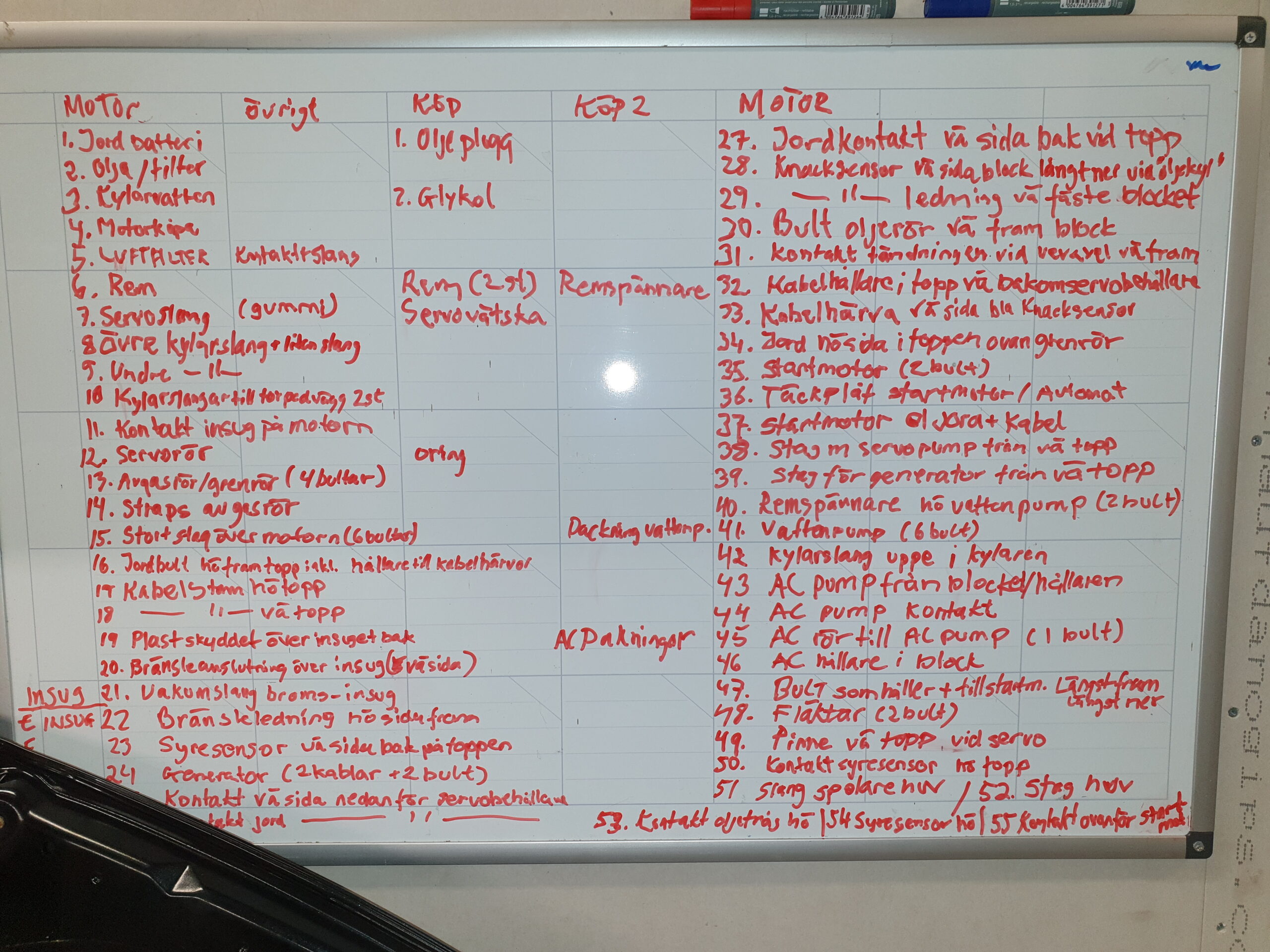 Ska du göra en helmotorrenovering som den här kan du ha hjälp av listan eftersom det annars blir mycket letande och lätt att beställa fel saker. Tänk på att själv kontrollera vad just du ska ha till din motor. Tänk på att beställer du delar utanför EU tillkommer 10 procent tull och 25 procent moms på slutbeloppet.