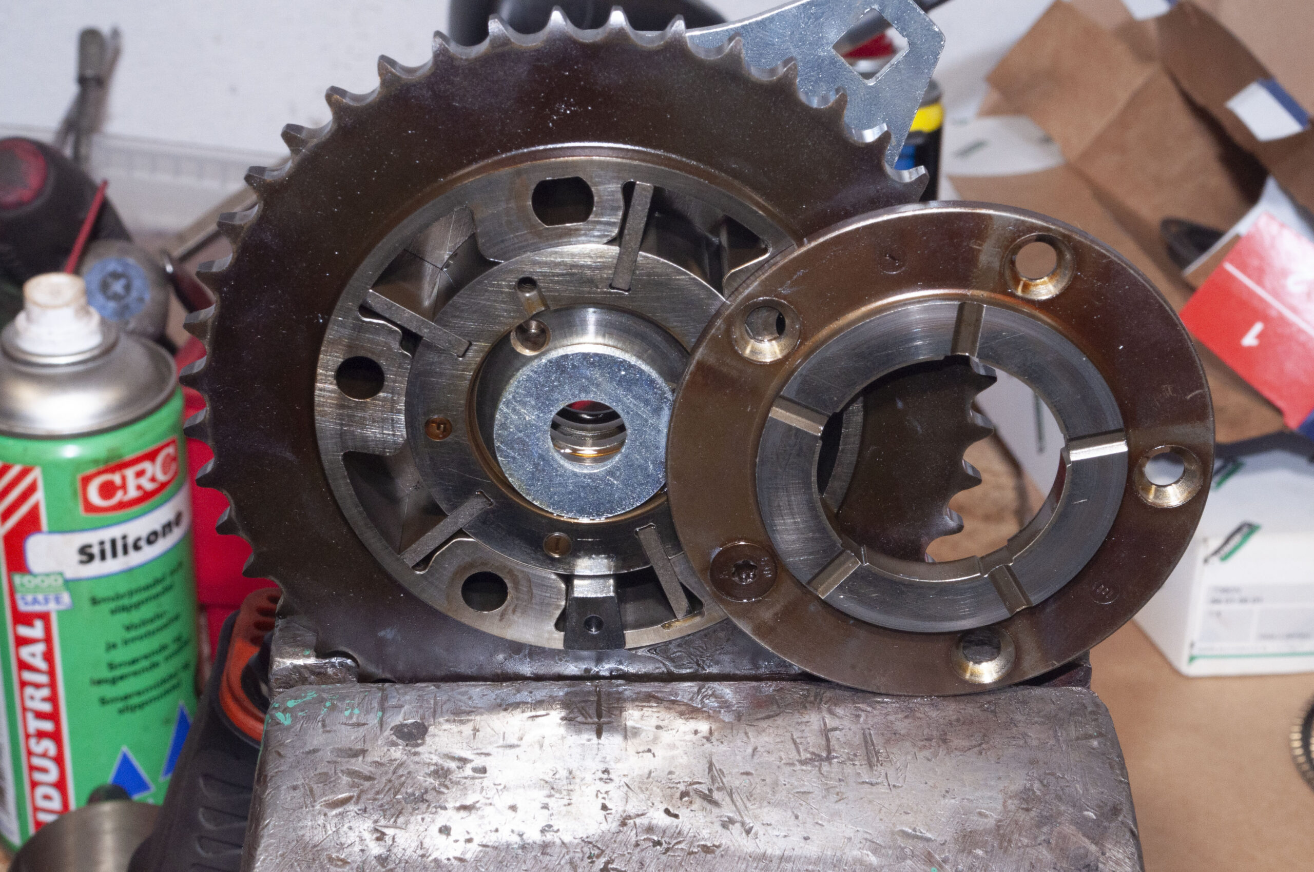 För att få en motor för ”street and strip” valde vi ett kamaxelkit som passar för att behålla VVT, en Comp cams SN 485521-20 ”Stage 1 LST Master Camshaft Packages”. Paketet inkluderar flera av kamdelarna, bland annat lyftare, fjädrar och tätningar. Det ingår också en kamaxelbegränsare ”Comp cams phaser limiter” vilket i praktiken är ett litet metallblock som placeras i VTT:n och baserat på motorvarvtalet kompenserar för trimkammens högre lyft för att kolv och ventil inte ska krocka. Ett enkelt verktyg följer med som hjälper till att fjädra isär VVT:n och underlätta monteringen av metallbiten. Det hela är ganska enkelt när man väl klurat ut hur arbetet ska göras.